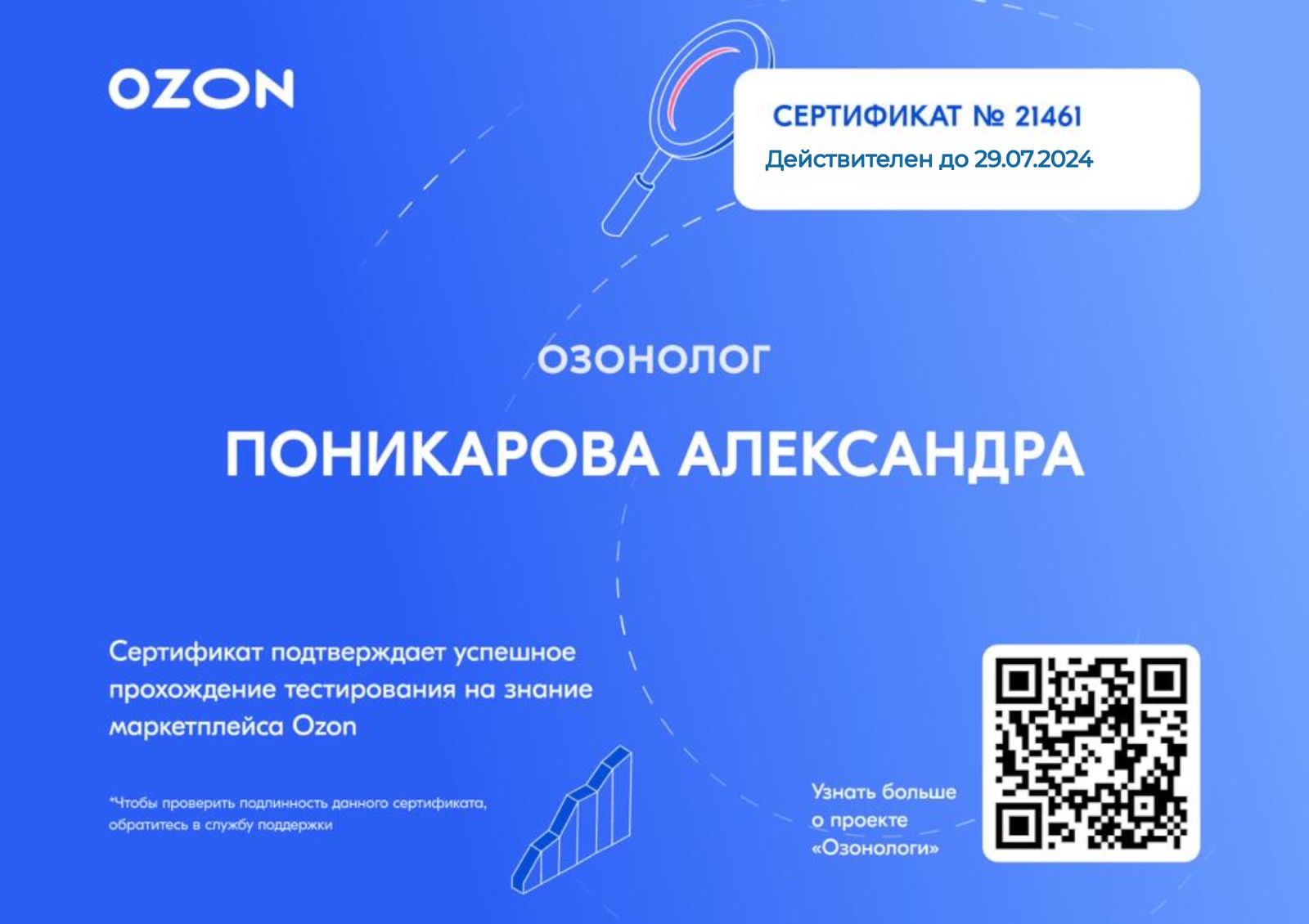 Сдаем экзамены у Ozon и первыми узнаем все нововведения площадок. Имеем подписанные договоры с маркетплейсами.